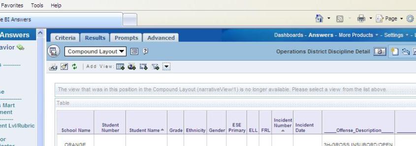 Turns out there was an invalid “view” above the Table object in the Compound Layout. This happens when an object is removed from an analysis/request and its placeholder is not removed from the Compound Layout. See the screenshot below – notice the empty placeholder above the table with the message “The view that was in this position the the Compound Layout is no longer available. …”.
