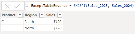ExceptTable = EXCEPT(Sales_2024, Sales_2025)
